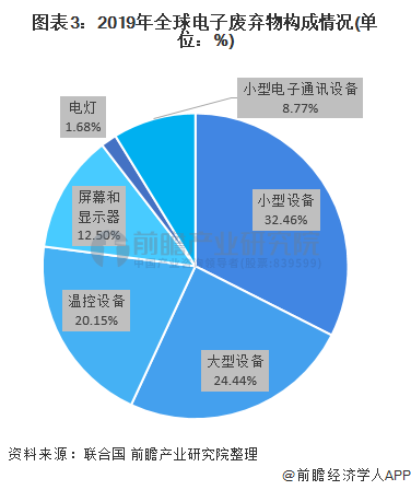 小型設備電子廢棄物占比最大,溫控設備增速較快,電子廢棄物回收利用率較低